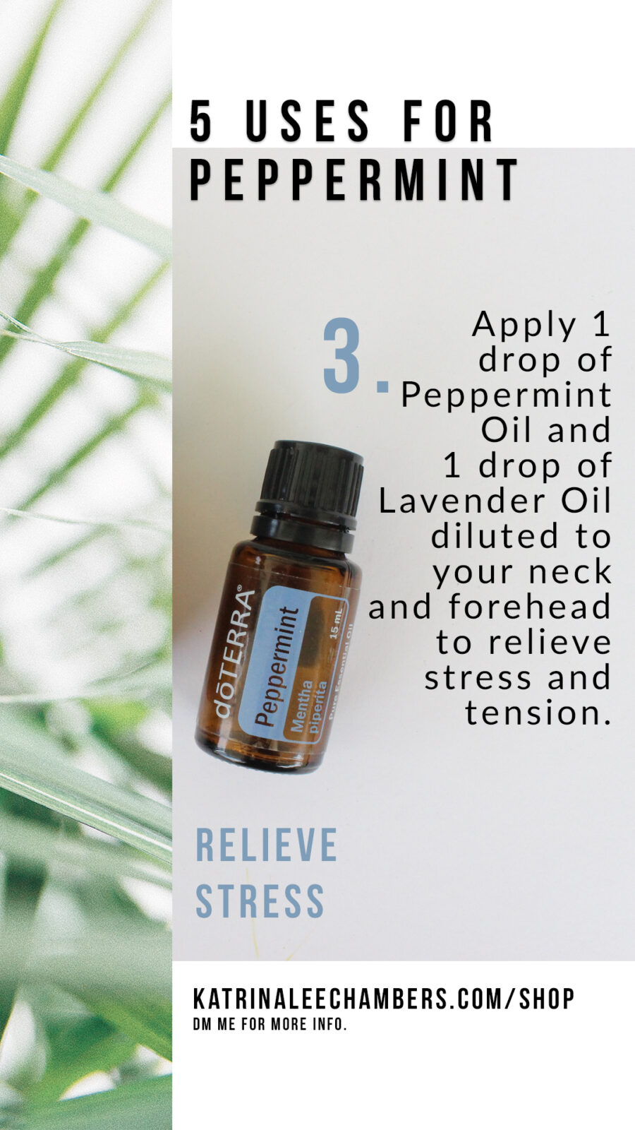 - Feeling stressed? Apply 1 drop of Peppermint Oil and 1 drop of Lavender Oil diluted to your neck and forehead to relieve stress and tension.