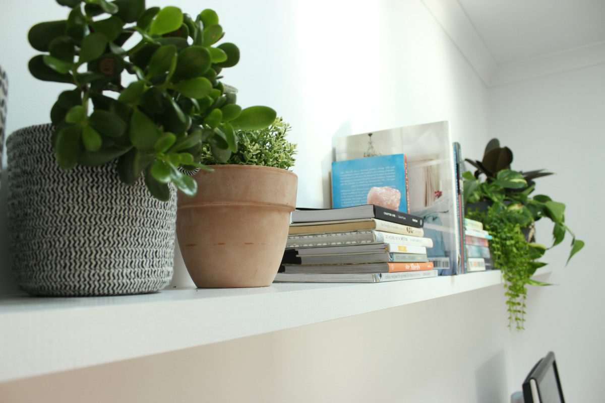 Here’s the shelf I added. This was hard to source! That back wall is 3.6m long and the regular Bunnings only have pieces up to about 3m long and they were too thin (like 19mm). I wanted it to be thicker (over 30mm). So after a few trips around town to different hardware shops I ended up finding a piece. It was dressed pine ready for me to paint in a white gloss. It was $77.