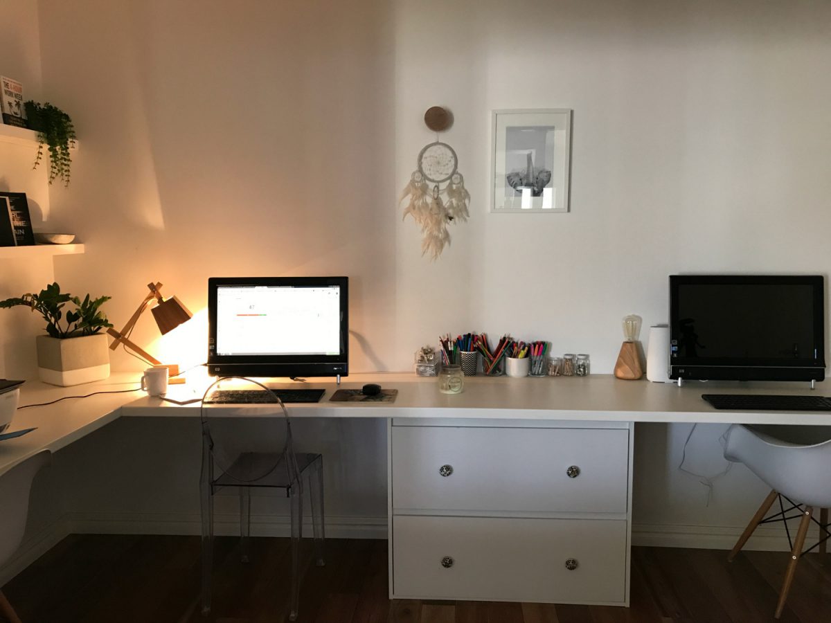 The desk was also a DIY project we did 4 years ago when we first moved it. It’s a kitchen laminate benchtop. That project probably cost around $350.
