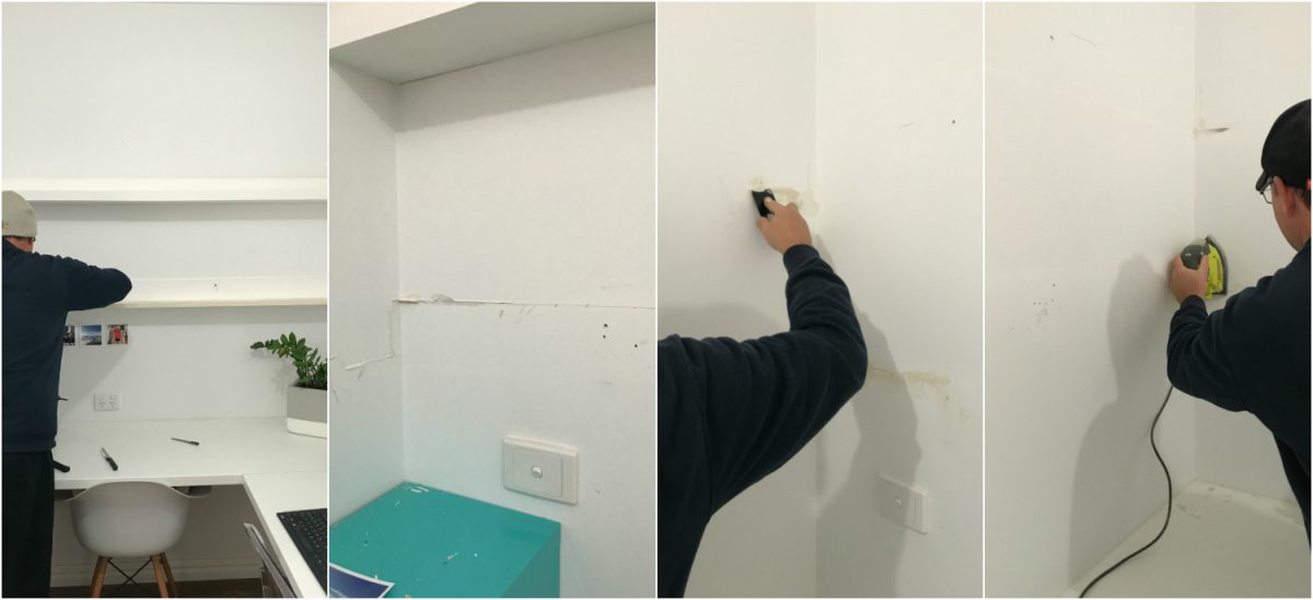 My husband is always up for a project and was eager to help. He ripped down the old shelves, patched up the wall and sanded them back to smooth again.