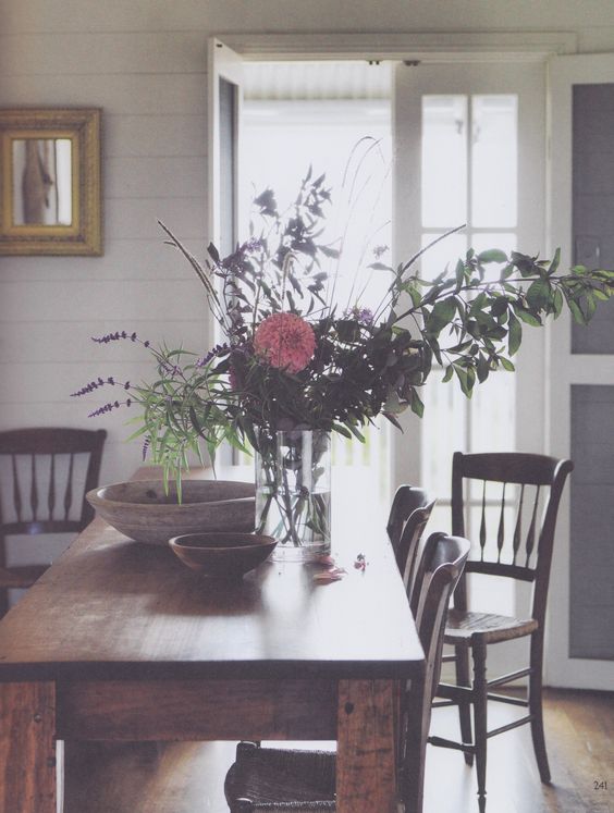 My dining room table always has a centrepiece, at the moment a plant takes pride of place. Too many people nowadays eat in front of the TV and use their dining table for storing junk on!
