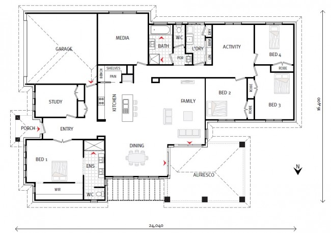Following on from my post last week about a new series called Floor Plan Friday, here’s the latest edition! I found this one from GJ Gardner Homes…. what do you think? I like the activity room around near the bedrooms. I like how you walk in from the garage. I love the wardrobe behind the bed. I so wanted to do this! But I didn’t have room. Bummer! I’m not sure about the media room and it’s position, however, it could work because it’s away from a lot of the rooms so the tv (or the xbox!) could be up loud and it wouldn’t interfere.