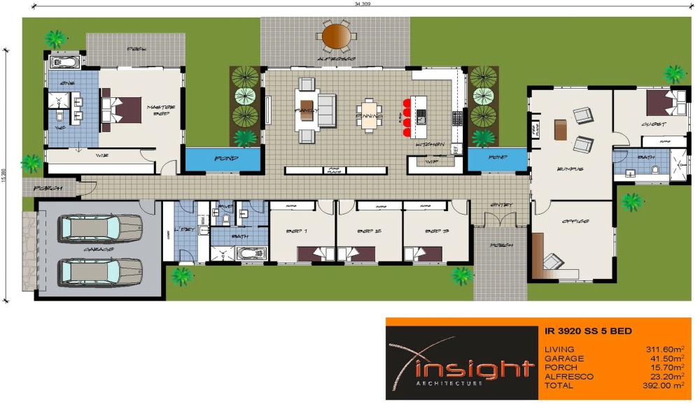 Love this agree a bit of tweaking, yes get rid of the ponds, add a third garage and remove that entrance, main entrance near parents retreat end would be great as an acreage/ wide block design, thankyou katrina for sharing