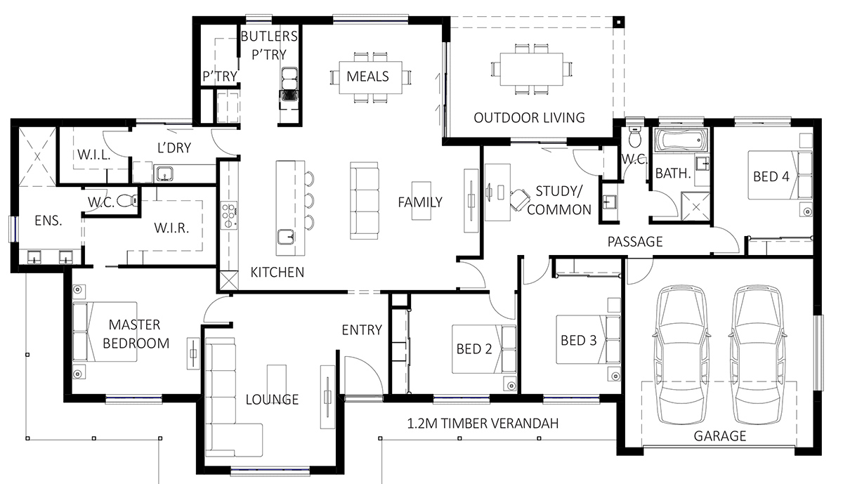 This is a display home in Wodonga, VIC which I've been through and I really liked the layout. I especially liked the butler's pantry and laundry configuration. They have a big barn door on the passage from the entry into the main kitchen/family which was awesome. I'd also make the meals window much bigger though …