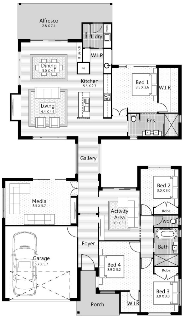 I don’t mind a house with a gallery walk-through area. It separates the house. Master and living on the back, kids on the front. I have older kids, so this would suit perfectly! I wouldn’t have to hear them up late watching their things.