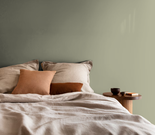Sage green walls paired with light timber furniture and cosy throws create a peaceful, lived-in feel. For a bolder touch, opt for olive green on an accent wall and keep the rest of the room neutral to let the colour shine. - Bedrooms:
