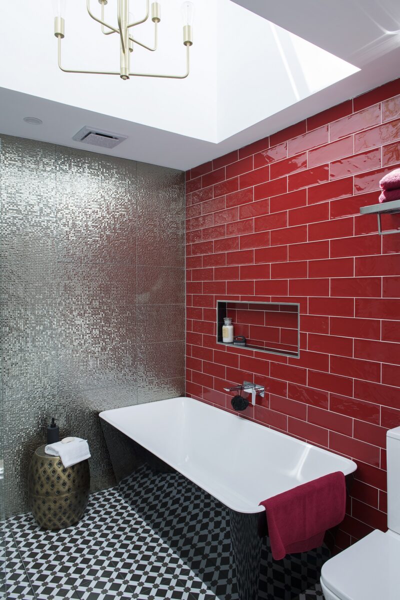 I’m not criticising the little girls room, because she will love it, and that’s what the show is about. Making those little faces smile and I’m ok with that. BUT the bathroom. I am yelling! WHAT THE? I like the black bath and sink. I also like the floor tiles. But then they had to stop. Just add one single red towel! Resale isn’t going to be easy for this house. LOVE the skylight though.