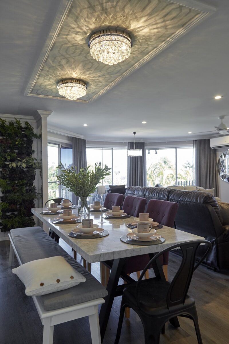 But you know what, with the rules what else did we expect?? Of course there was going to be black, purple/plum and mirror everything. The dining room really stressed me out. Those tolix chairs will be too low (they always are!) and nothing matches (I like matching, especially couches!). Vertical gardens – gone. Too hard to look after. The lighting in there?? Ummmm.