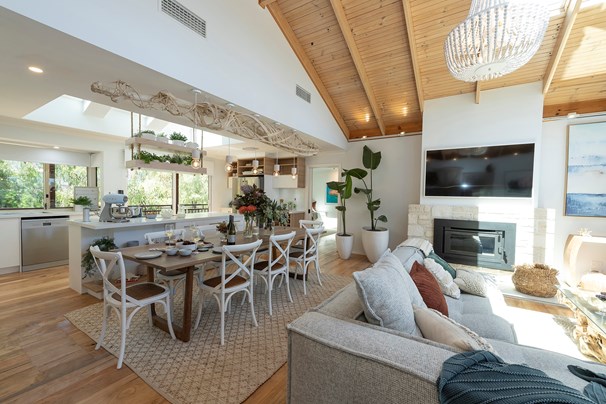Teams went all out to spoil Mikaela & Eliza’s mum creating a truly coastal inspired retreat. I knew their Mum would be happy with whatever and I am glad the rules weren’t too crazy. How good is the raked ceiling?!