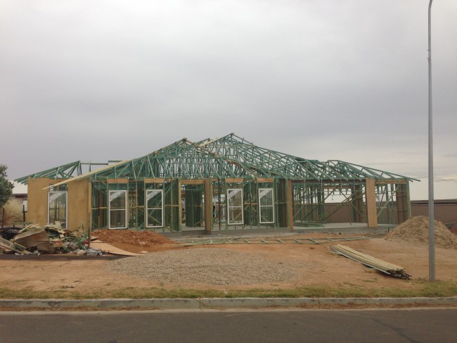 Isn't she looking pretty?? I am in love (with timber frames and windows!). Doesn't take much to please me when it comes to this new house. Excited. We have a verandah running across the front and a triple car garage. Husband is in heaven! He's been wandering around in it already. High ceilings, lots of …
