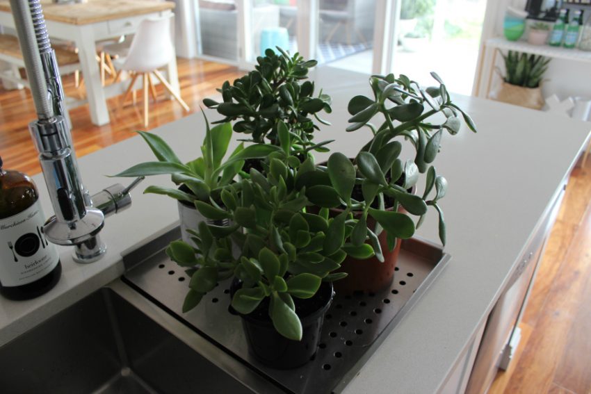 I really am addicted to the Jade plant. You can see below! I just love the look of it, how easy it is to maintain and you can grow it yourself. The reason why I have so many is that I break a bit off, stick it in some water, let it grow roots, then put it in my garden. Then I grow a bigger Jade and can pot it or break some off and start again. I actually have 2 little stems sitting in water currently waiting for roots to grow. A few months ago I was in Melbourne and walking down a side street with my Dad. Hanging over someone’s fence as we passed by was a huuuuge Jade plant. It stopped me dead in my tracks… Sneakily I snapped a hunk off and brought it all the way back to Wagga to grow more of my own. This plant is so easy to make more of!
