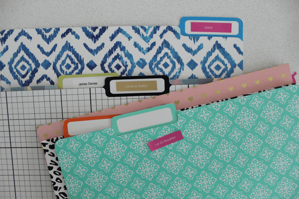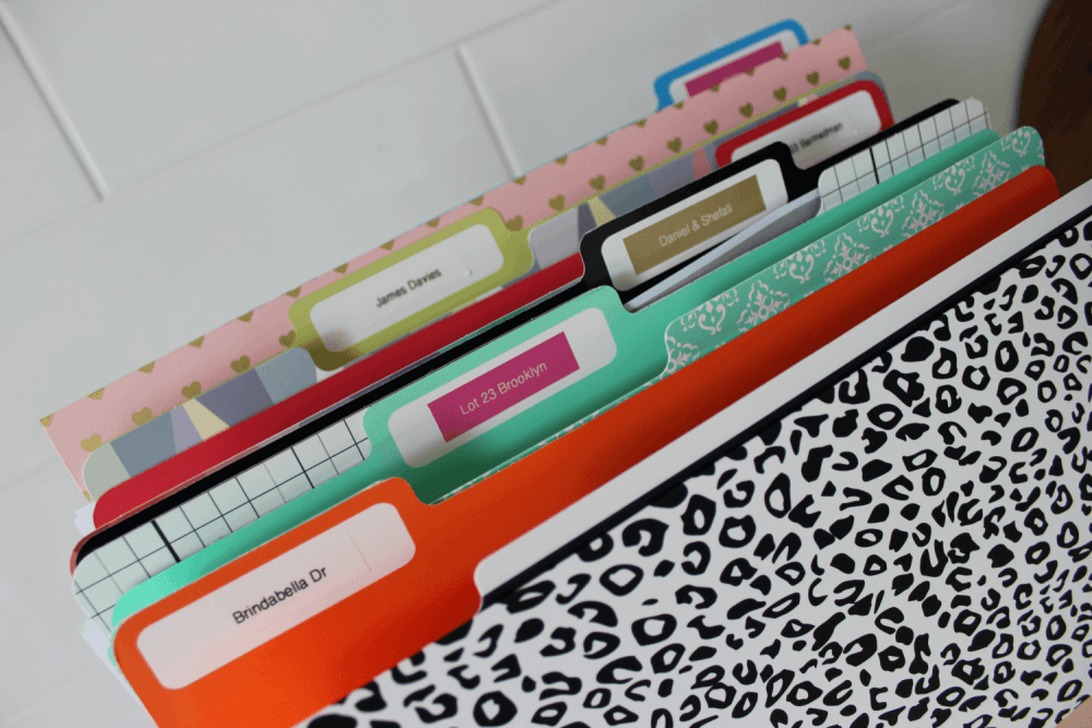 I had a good clean up in my office before Christmas so I wanted to start the year with less clutter around me. I popped in to Officeworks and grabbed these funky folders so I could put all my clients and their house plans/changes/invoices in them. All I needed to do was print out some labels, stick them on and I was done. I could then easily find who was who.