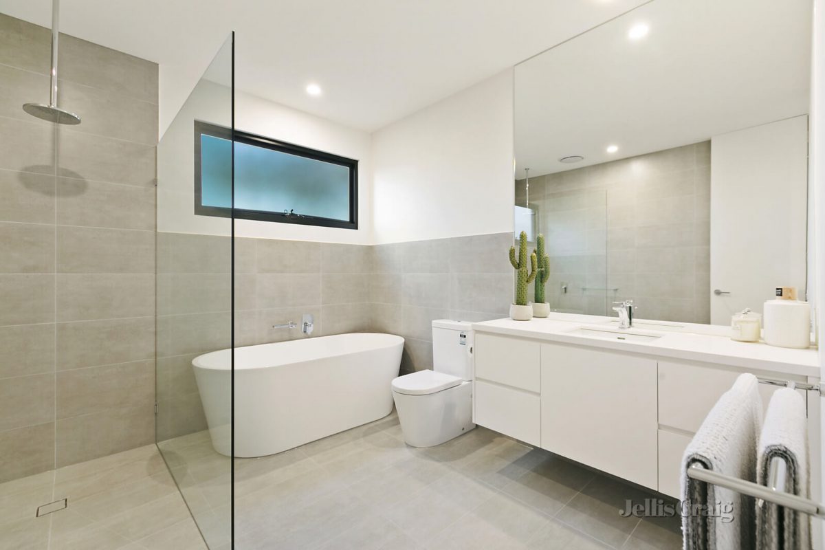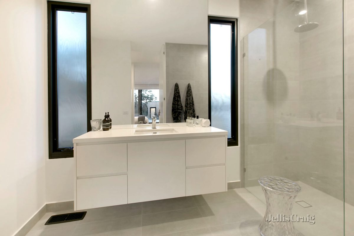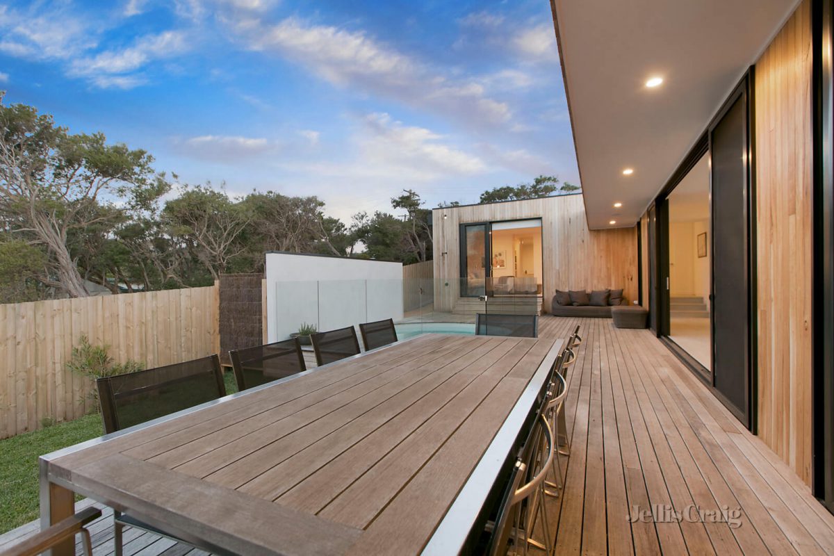Designed for comfort and practicality whilst maintaining aesthetic excellence the property features, a visually arresting exterior of vertical timber boards with contrasting polished concrete render finish and a light flowing interior with spacious high-ceiling rooms and quality inclusions. Indoor and outdoor spaces merge effortlessly with expansive, black commercial grade sliding doors and windows throughout the home integrating entertaining areas. – Agent.
