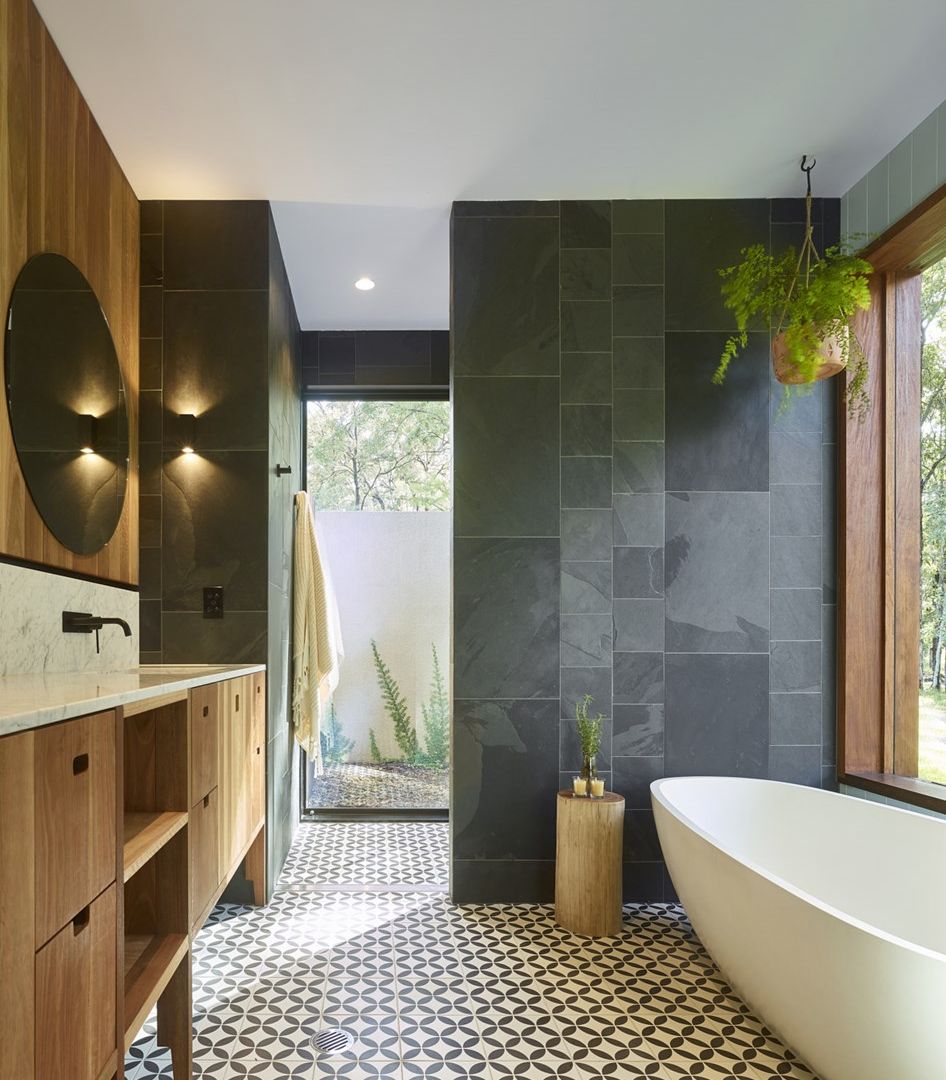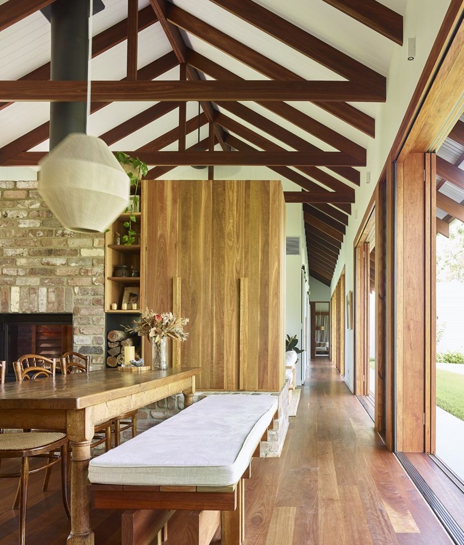 This healthy home’ has a wholesome value system. Blending the use of raw eco conscious materials such as solid hardwood timber, stone and recycled brick with the extensive use of glass and high end marble creates an artful style that maximised the use of light and space whilst maintaining a very strong engagement with the land. – Agent.