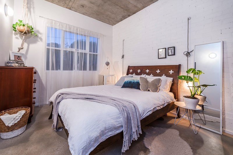 While this stunning dwelling looks like it could be an old warehouse conversion that’s been given a modern renovation, it was actually completed in 2016. Inside the warehouse conversion feel continues, with the entry flowing into a spacious open-plan kitchen, living and dining with white-painted feature brick walls, polished concrete floors and 3m high exposed concrete ceilings that meld the industrial feel with a distinctly Scandinavian influence. With an abundance of natural light and timber-framed windows and doors that overlook the lush, landscaped garden, the home has a wonderful warm, inviting feel. – Agent.