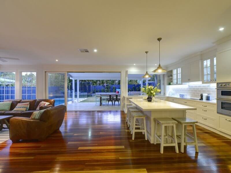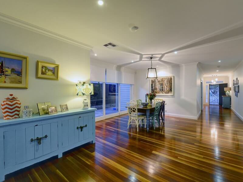 “Architecturally designed to showcase an artful blend of grand proportions and luxurious finishes, this stately home offers versatility and a residential oasis for a growing family. Distinctive interiors reflect true Hamptons style with rich timber floors, provincial style built in cabinetry and banks of windows framed with white timber finishing’s.“- Agent.