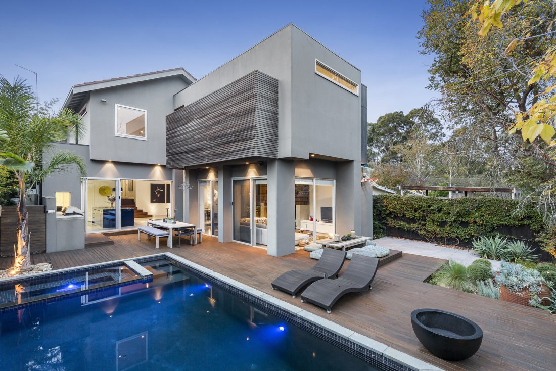 This meticulously renovated and extended private family residence full of natural light and set in stunning garden surrounds with inground pool, high floor to ceiling glass windows, excellent indoor/outdoor entertainment living and situated in Grace Park Estate. – Agent.