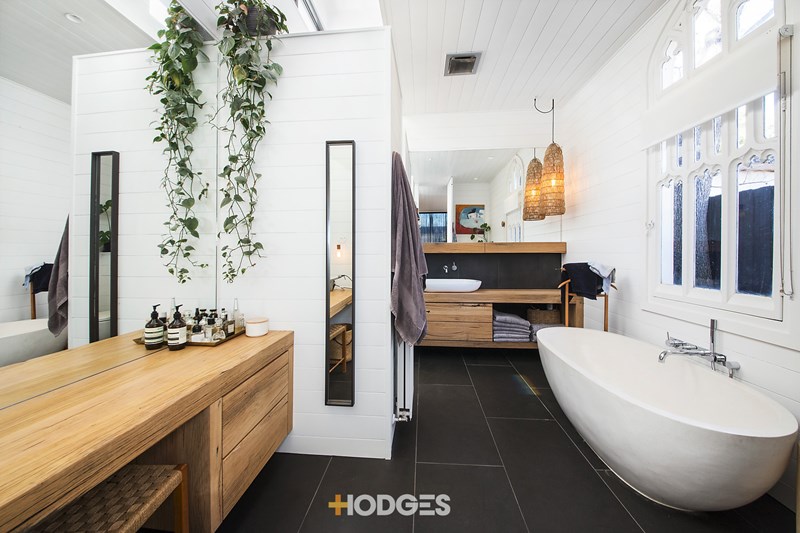More than just a landmark of period beauty, this impeccably renovated architect’s own home is also a benchmark of family-functional architect design. Awarded Bayside’s Best Heritage Renovation 2016, this four bedroom and study, 2.5 bathroom, triple zone Victorian residence is expertly re-crafted to maximise north sun and garden outlooks as it transitions from gracious original rooms (including a library and grandly curvaceous formal lounge-dining), to a streamlined family zone. Re-configured for a modern family with a private master domain (including cutting-edge dual-shower ensuite, vanity area, robes and private garden outlook), this clever floorplan features well-zoned children’s quarters (one with mezzanine-study) and a hidden home-office. – Agent.