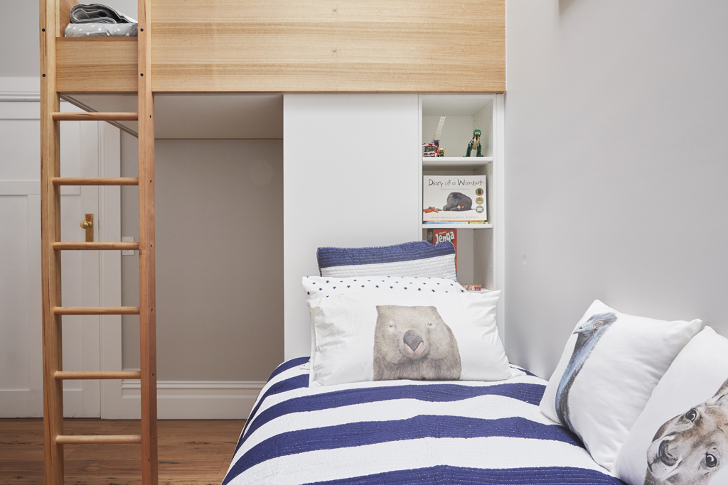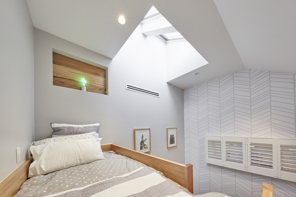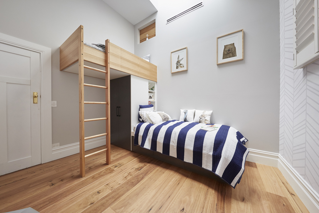 Skylights in a kids bedroom? They’ve got to be kidding. Also who in the hell is going to make the bed in Sticks and Wombats room. It’s difficult enough in a bunk bed at normal height. Unless you had teenage boys it would be dangerous.