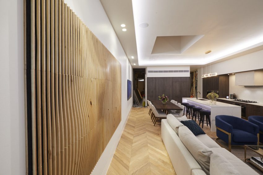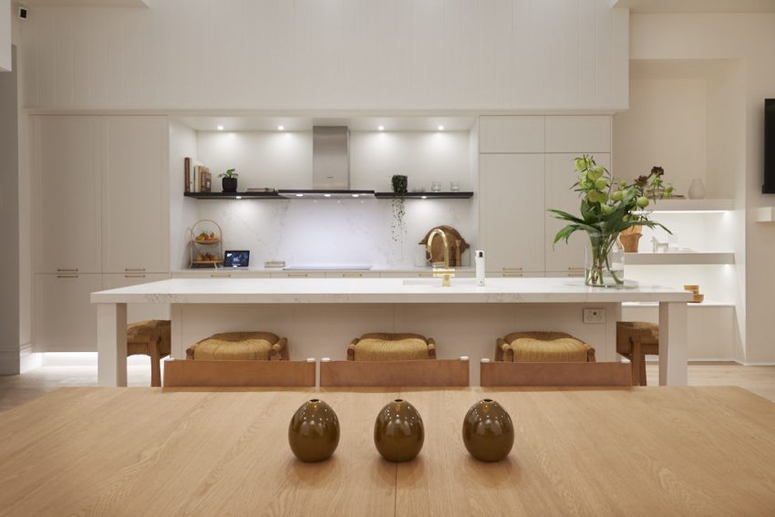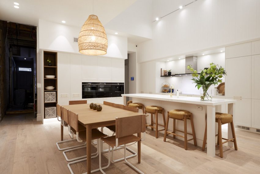 Jesse and Mel are back! This week they took out a win for their near-perfect living/dining room. Like Deb and Andy, Jesse and Mel decided to orientate their dining table adjacent to their kitchen bench, a decision that won them favour with the judges, who loved the open, contemporary feel. They particularly loved that the couple held back 500mm from their kitchen to allow extra room in their living area, making theirs the most functional and usable living space of anywhere on this year’s Block.
