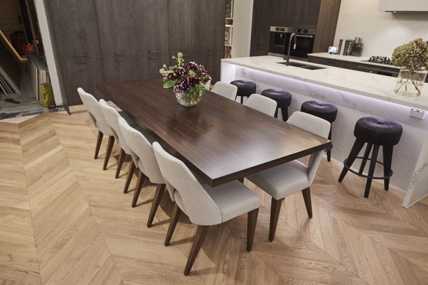 Tess and Luke had various setbacks this week, but overcame every conceivable obstacle to produce a stunning, contemporary living/dining space. The hero in their room was that beautiful custom-made timber table, which they built to butt up against their huge island bench, making it the focal point of the room.