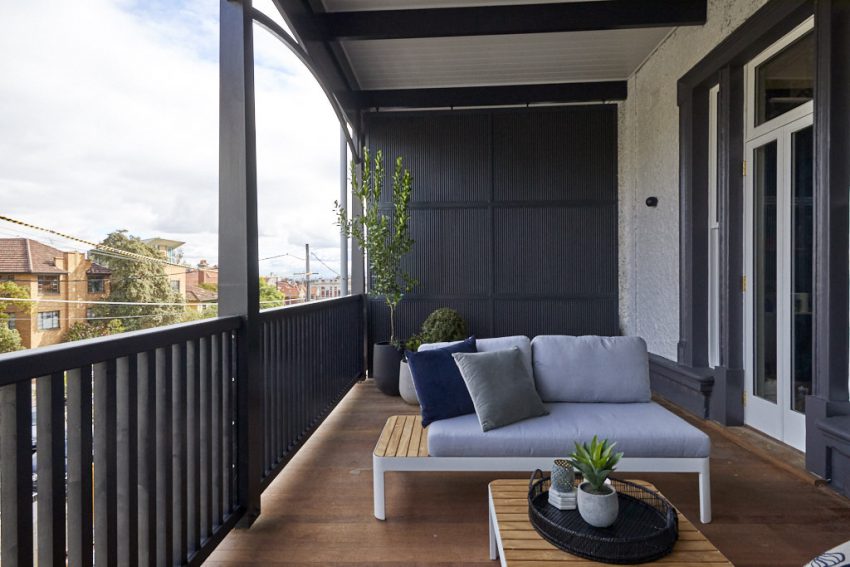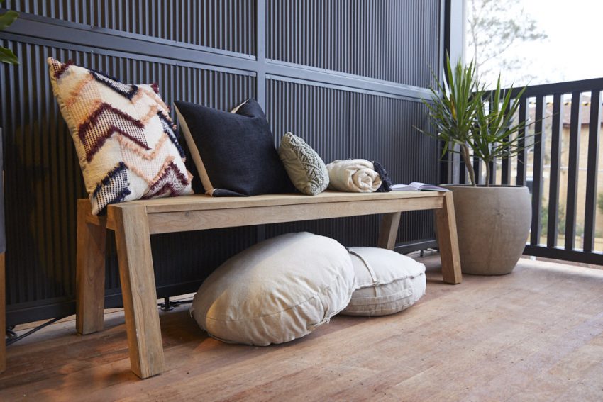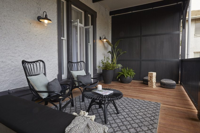 Simplicity was the order of the day for Jesse and Mel, who opted to furnish their two verandahs sparsely, yet stylishly, in an attempt to save money for their terrace area next week.
