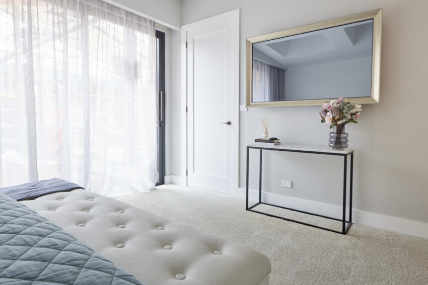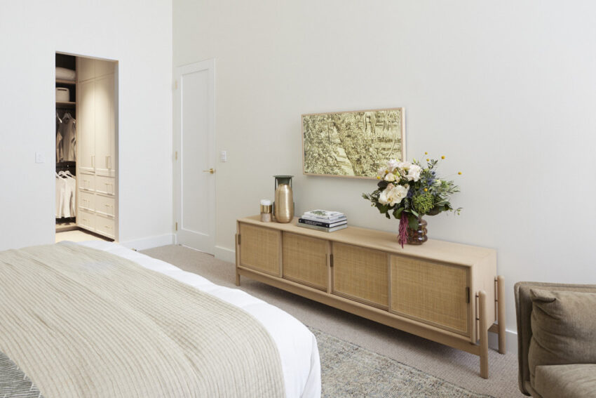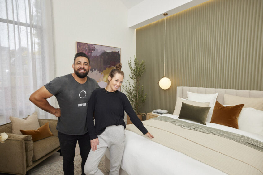 With wide North-facing windows, a generous layout that draws focus to the beautifully styled bed, arches adding a softness and warm tones from the rich carpeting to the walls, the judges were immediately impressed by Kirsty and Jesse’s master bedroom. A closer look however revealed a few problems – the artwork wasn’t exactly what Shaynna would have liked to see, the Tallboy looked out of place and in general there seemed to be a clash between the contemporary and classic styles. Add in a beautiful, but undersized walk-in robe and the country couple were left wondering if the pluses the judges found would outweigh the negatives.