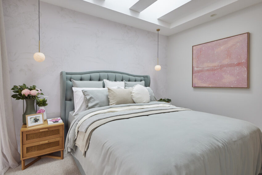 Light bright and colourful, Tanya and Vito’s master bedroom was the “Goldilocks room” for the judges this week – not too big and not to small, but just right. Bringing the Moroccan feel of the guest ensuite into the space, the pair created a haven away from the house but still connected. Shaynna immediately fell for the bedhead, the side tables, the wallpaper and the artwork – including another Tanya original – with Darren warming to the quirky styling touches. The Kinsman wardrobe too, united them all, with Darren declaring they had the best storage solution he’d seen all day.