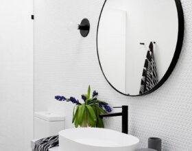 A corner gallery wall is very cool! If you’re stuck on what to do with a corner (aren’t we all?!) then this might work for you. And it’s in a bathroom – that’s different.
